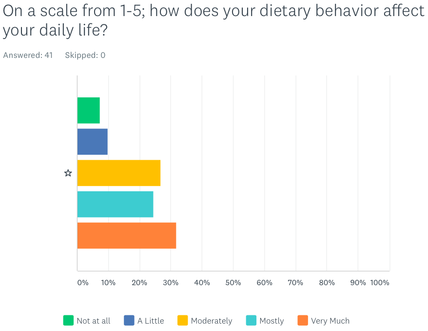 We would need to seek out users with a more restrictive relationship with food to find what role, if any, could technology play in their specific dietary needs. A screener survey was sent out and two key questions were used to narrow our user focus: