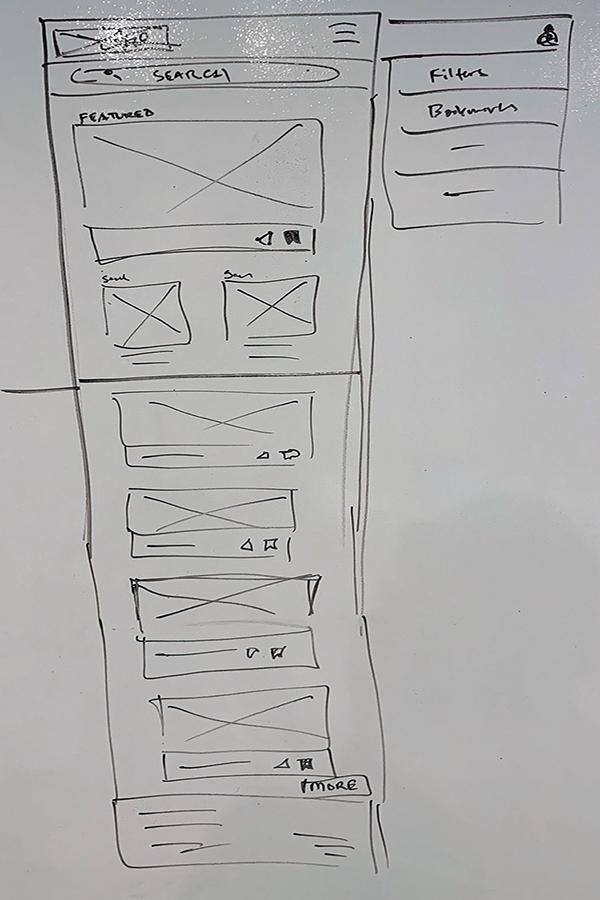 Keeping in mind our MVP, we began to sketch layout ideas. Through the Design Studio Process, we completed 3 rounds of ideation using the homepage as a starting point: