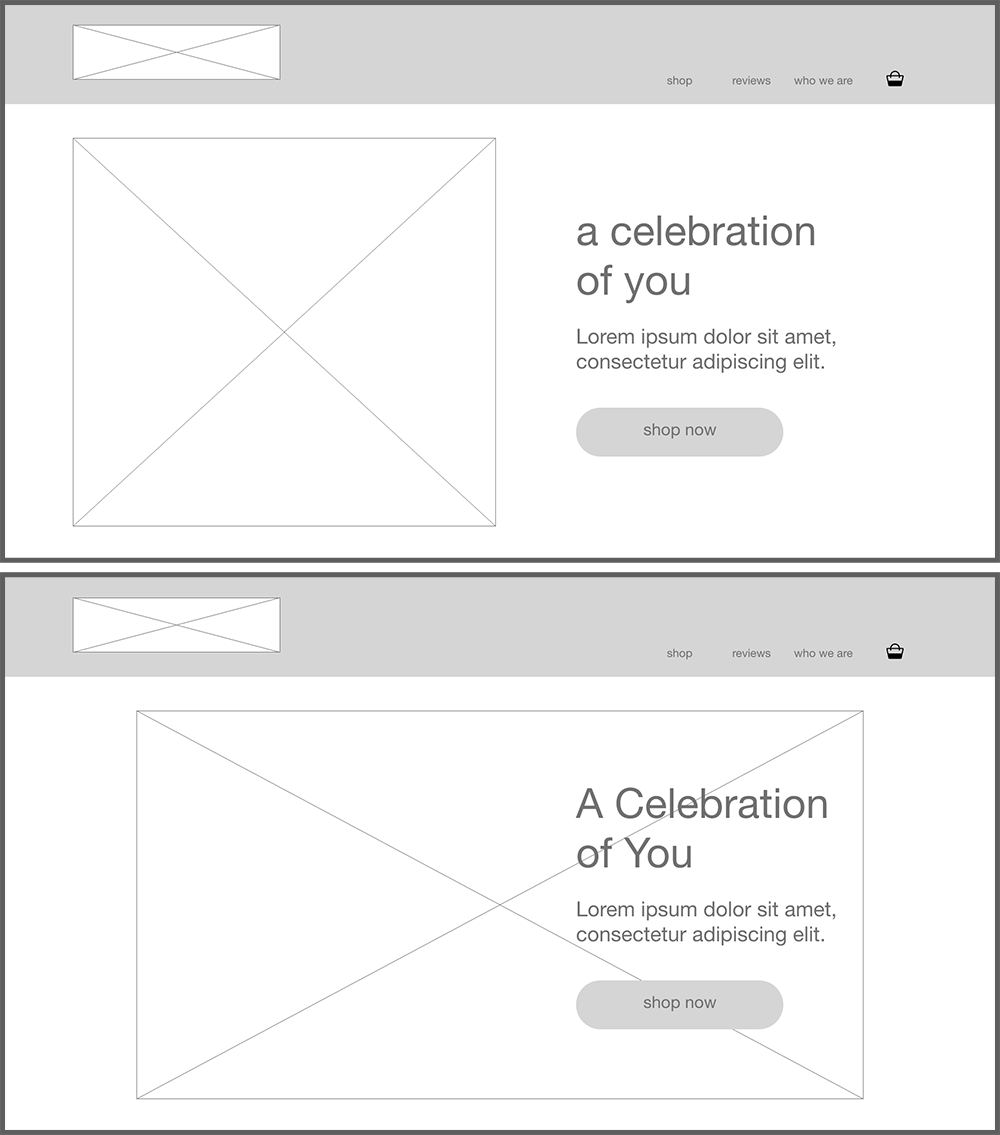 Top: Original Wireframe; Bottom: Revised Wireframe